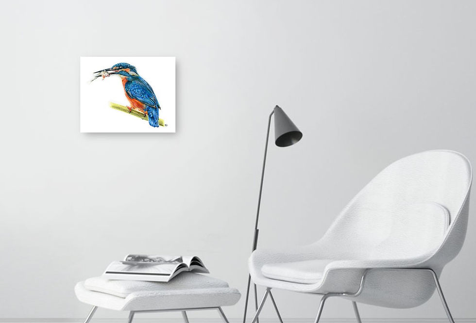 High quality Giclee print of a Kingfisher proudly sitting with his catch of the day ...titled 'Gone Fishing'